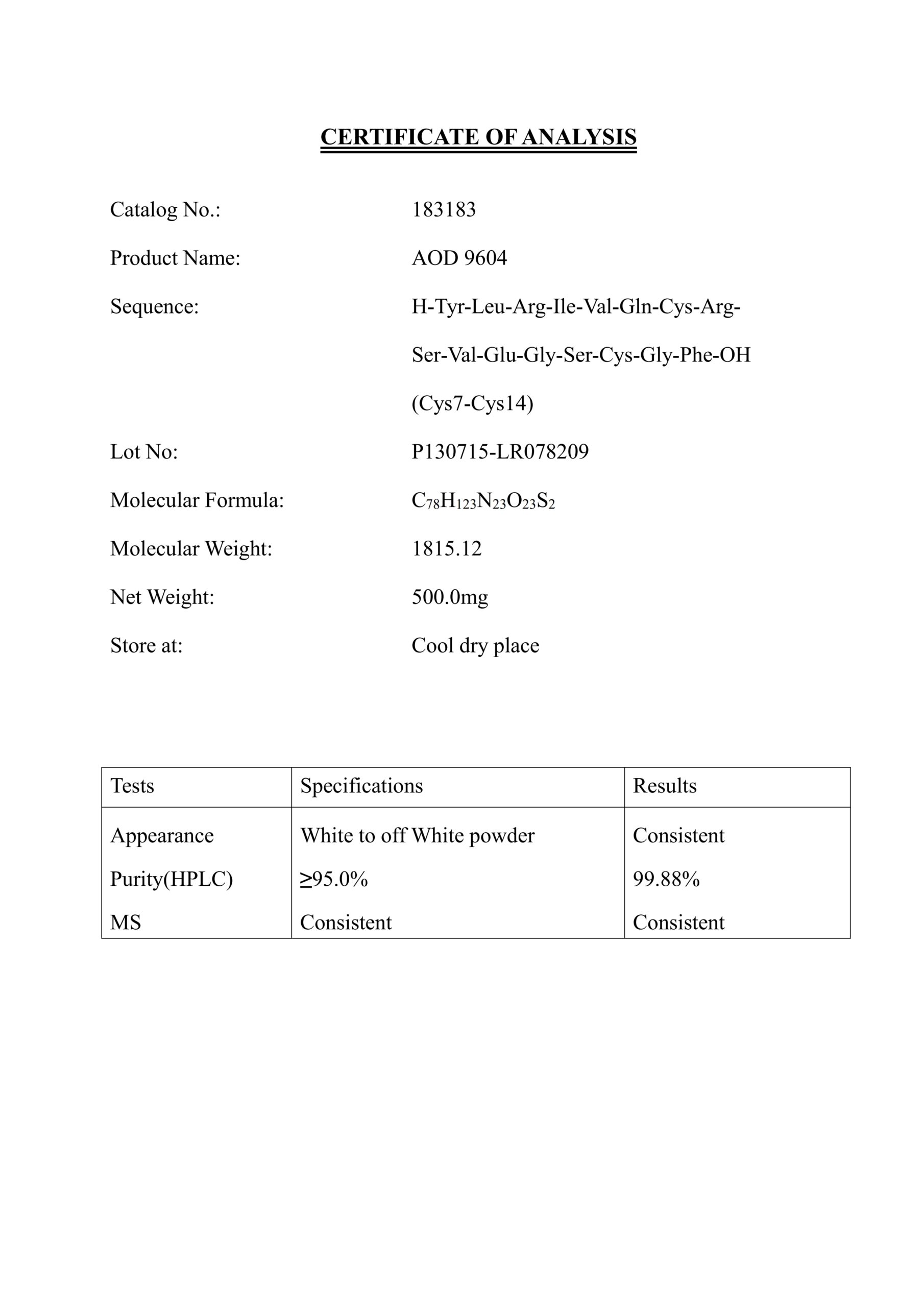 AOD9604 был отправлен на контроль качества: