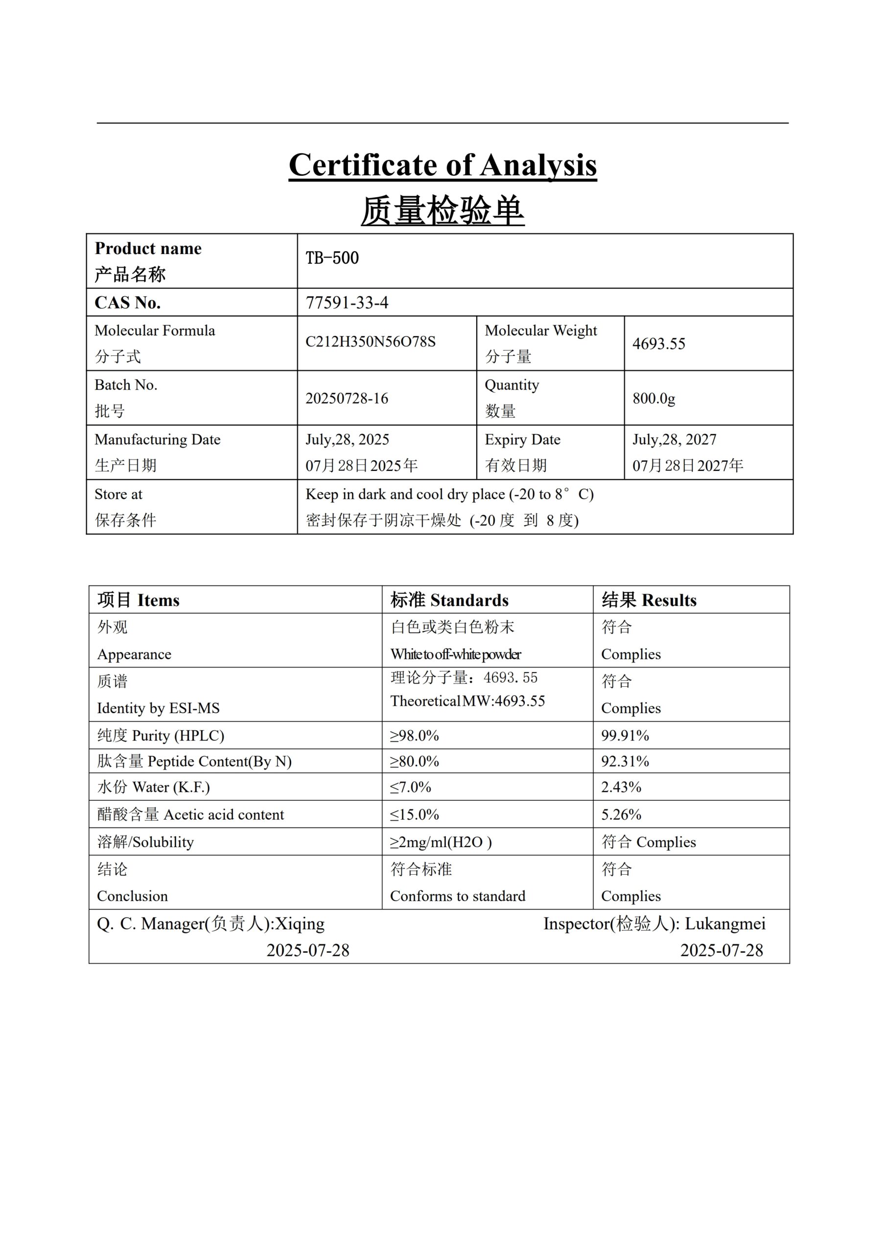 | CAS-номер | BPC-157 - 137525-51-0; TB-500 - 75591-33-6 |