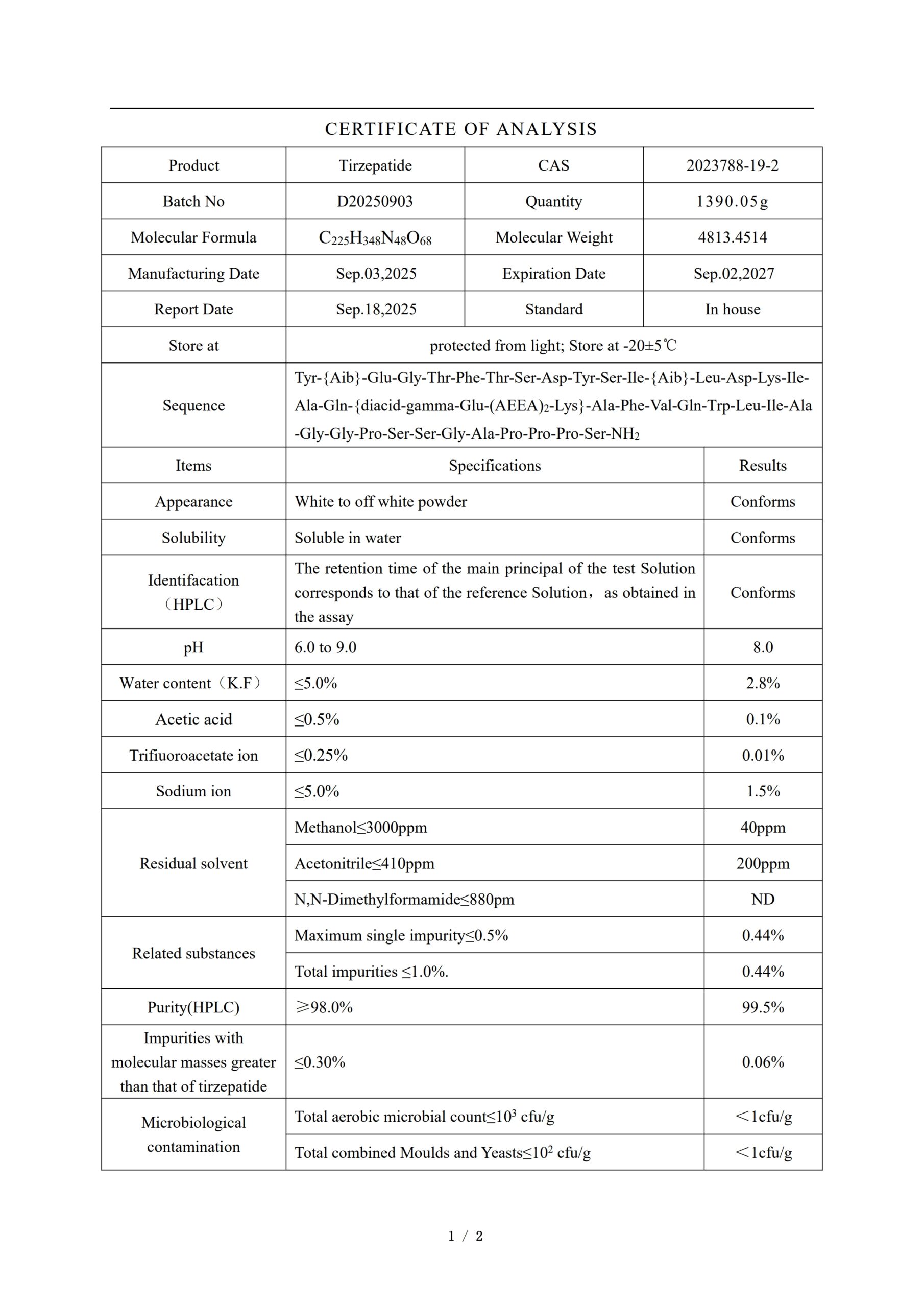 | Чистота партии | 99.5 % |