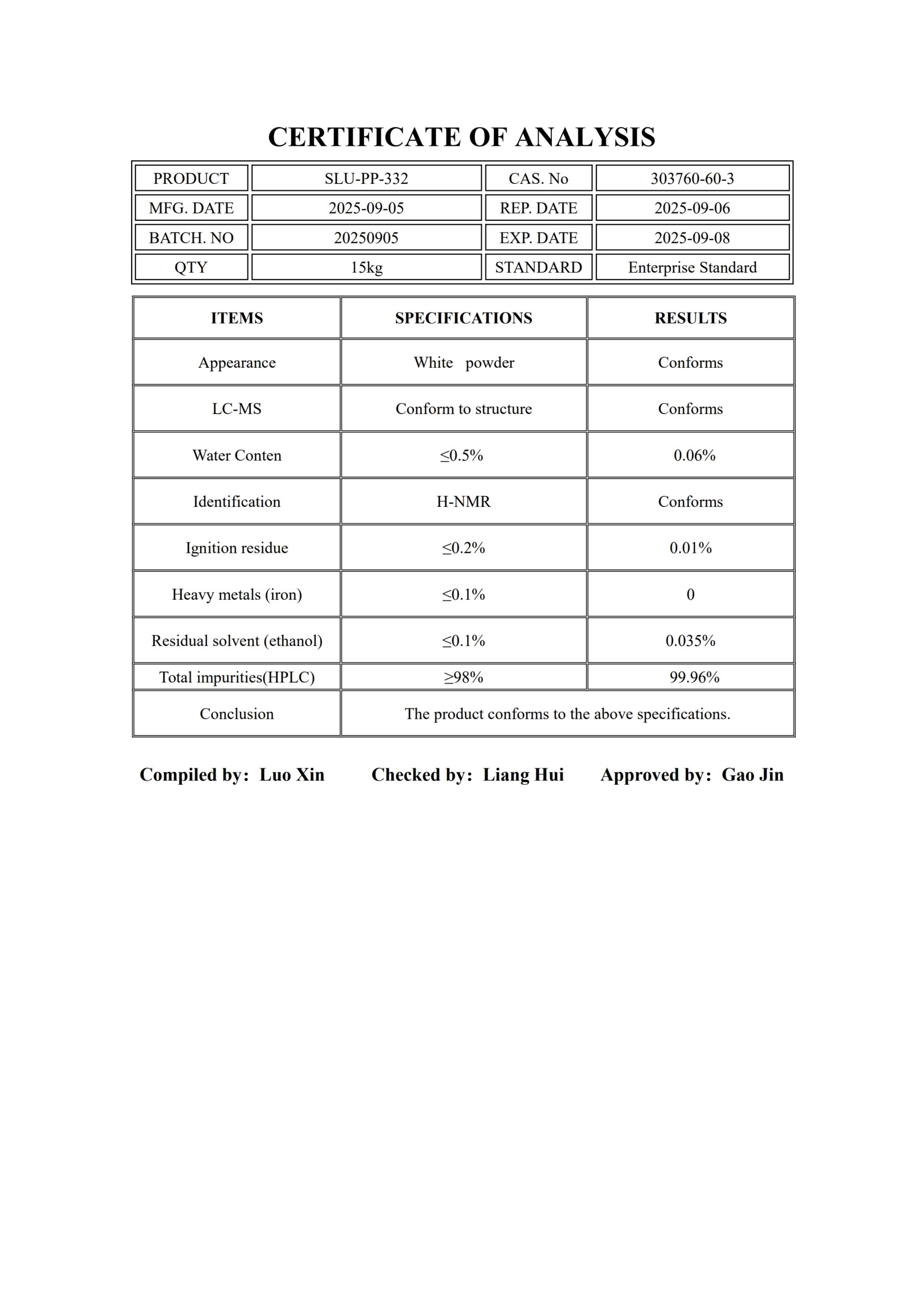 | Чистота партии | 99.96 % |